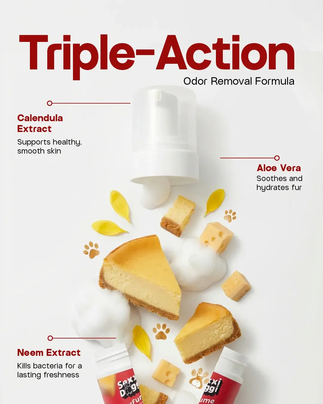 -Designed as a waterless foaming cleaner, this furfume refreshes fur without the stress of baths or rinsing. The lightweight foam cleans deeper, tackles bad odour at the source, and leaves fur soft, not sticky or greasy. Enriched with Aloe, Neem, and Calendula, it keeps the coat clean, glossy, and irresistibly smooth between washes. And that rich coffee fragrance? Fresh, cuddly, and dangerously sniff-worthy, no bath required. Daily baths? Not anymore.