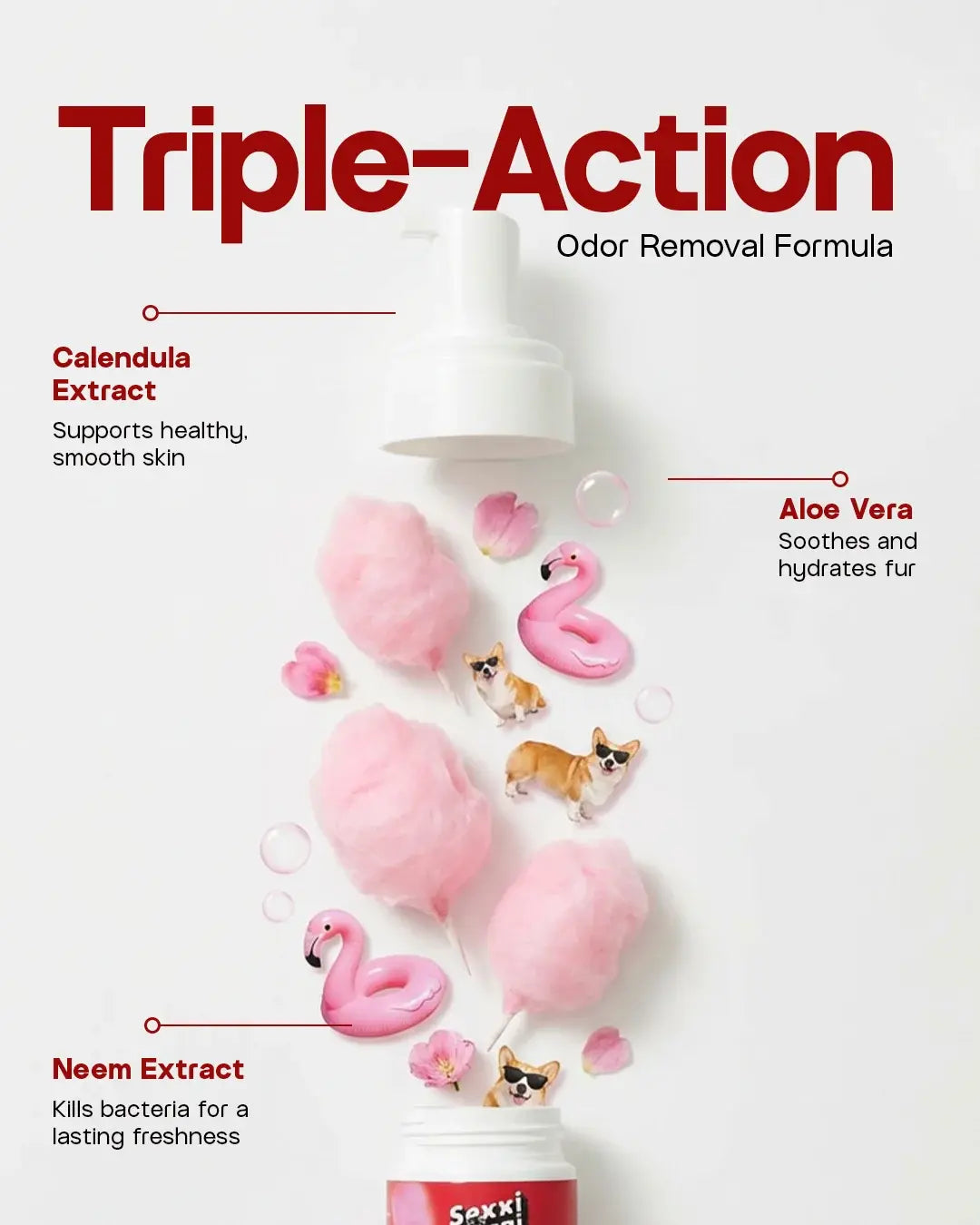 +- Waterless Foaming Clean that refreshes fur without baths.