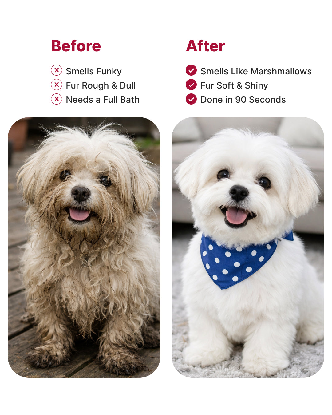 It lasts hours, not minutes. One use keeps your dog fresh long after walks, playtime, and zoomies.
