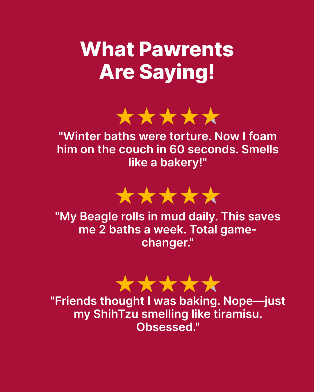 Think dry shampoo… but for dogs. The foam lifts dirt, sweat, and oils to the surface, making it easy to wipe away.